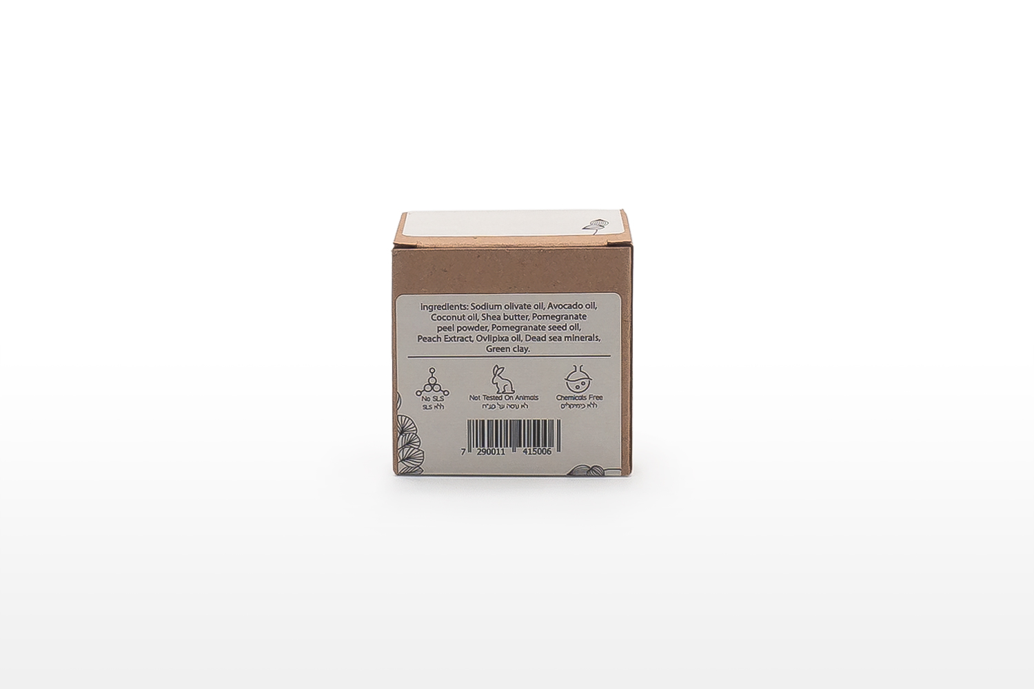 Key Ingredients: Olive oil, Almond oil, Dead Sea Minerals, Pomegranate peel powder, Pomegranate oil, Palmarosa, Buckthorn