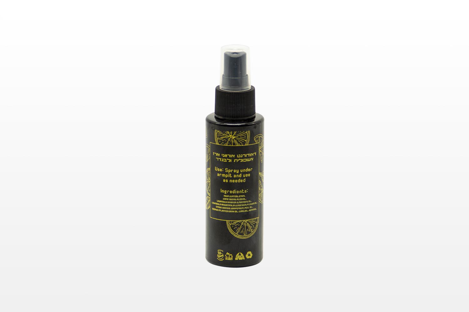 Ingredients:Aqua (water), Ethyl (cane sugar) Alcohol, Lavandula hybrida (Lavender) oil, Lavender Flower oil, citrus Grandis,(grapefruit) peel oil, Cedrus Atlantica Baah oil, Linalool, Geraniol