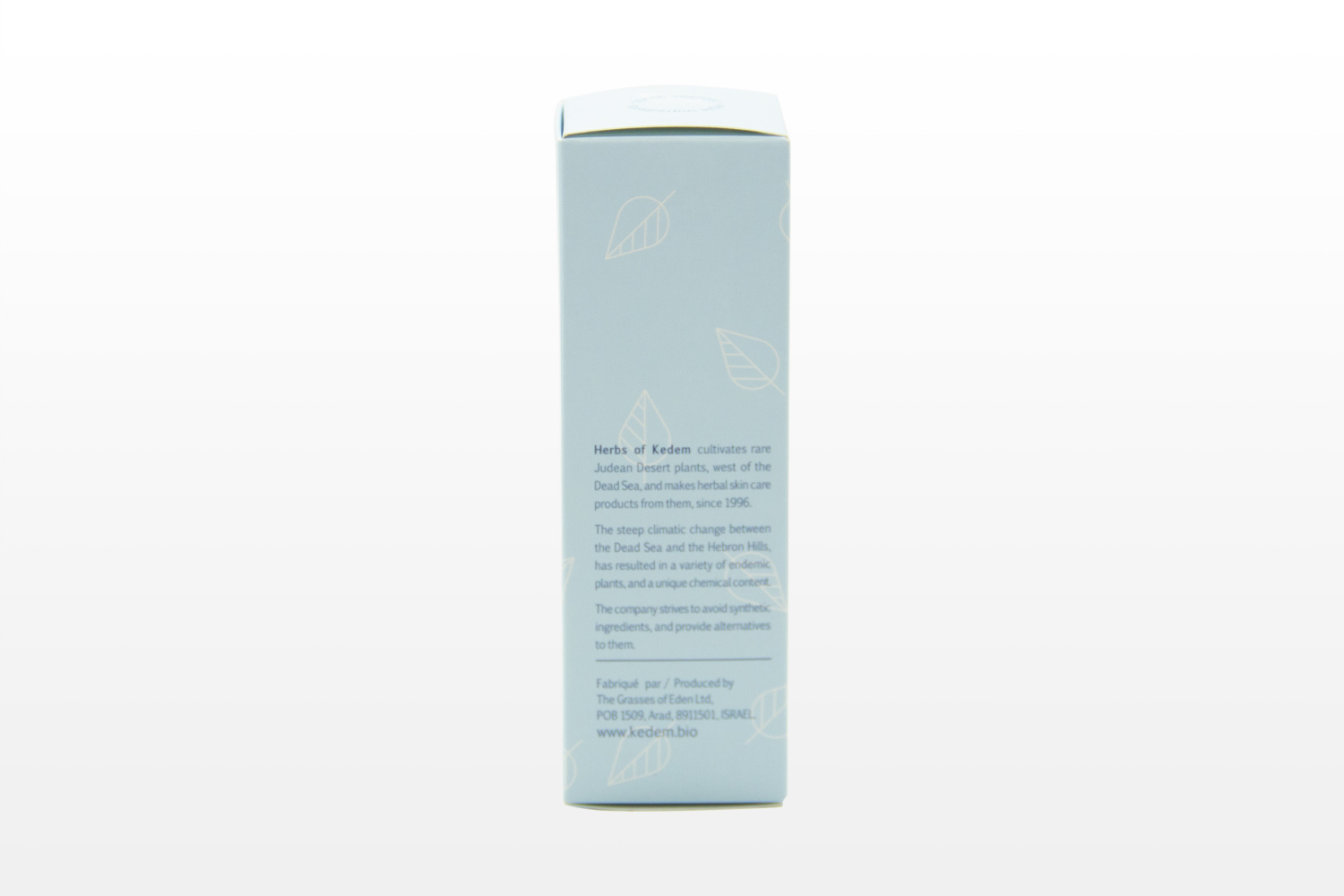 The steep climatic change between the Dead Sea and the Hebron Hills, has resulted in a variety of endemic plants, and a unique chemical content The company strives to avoid synthetic ingredients, and provide alternatives to them.