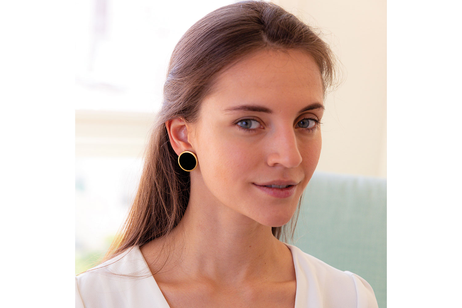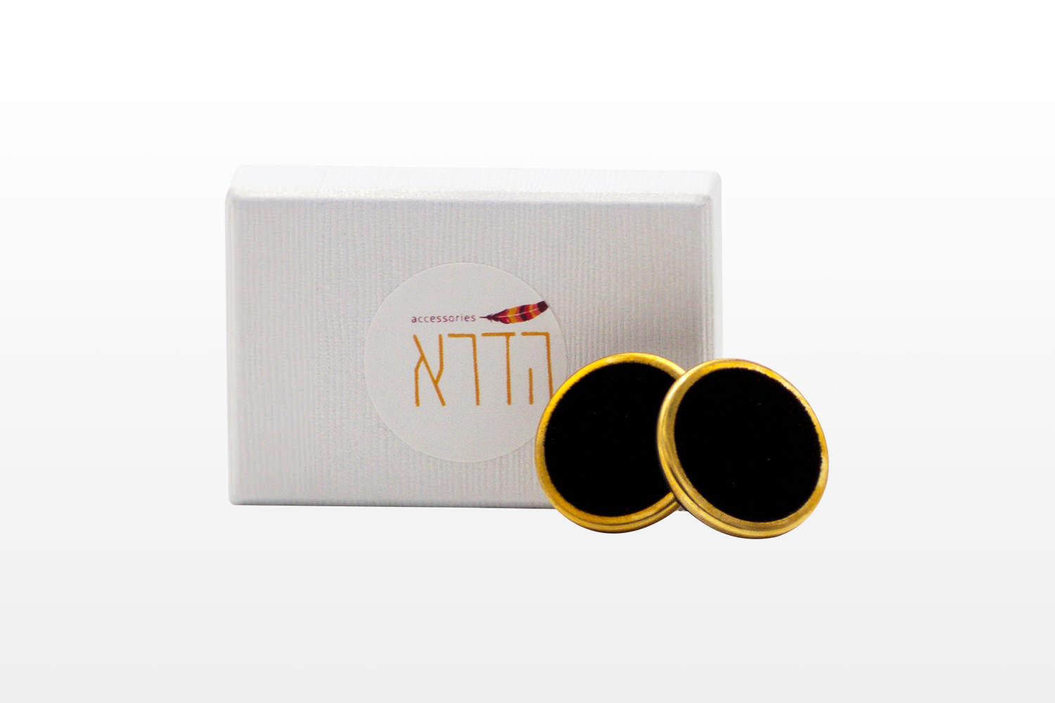 Gold Plated Round Earrings With Black Velvet On. Pendant size: 2*2 cm