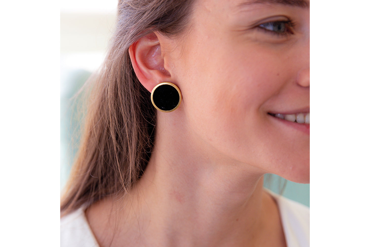 Gold Plated & Black Velvet Round Earrings
