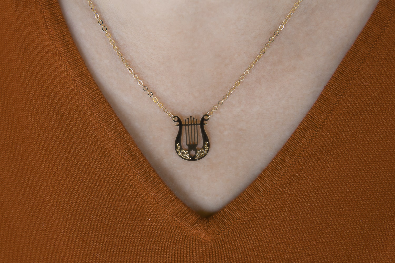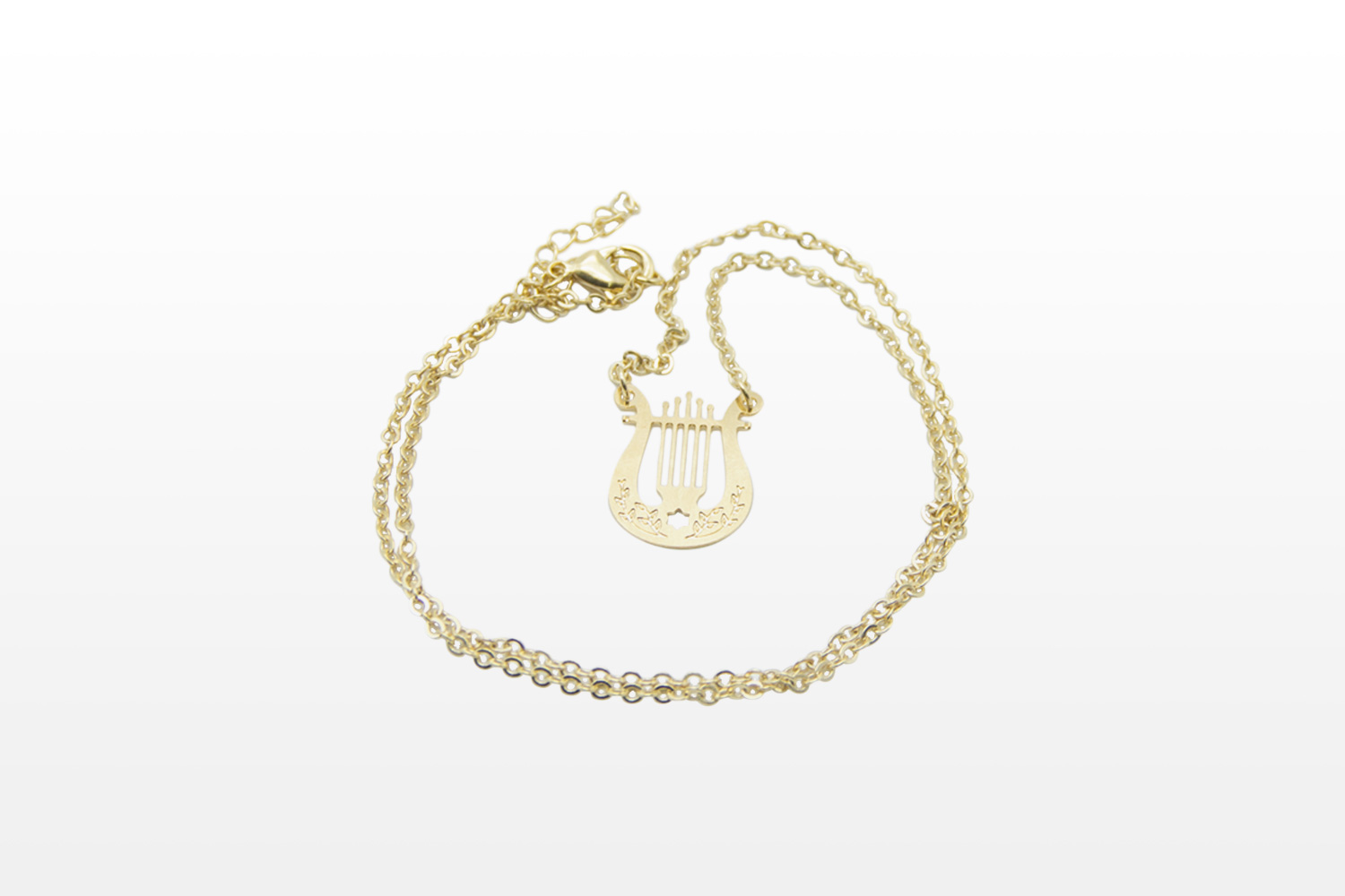 Gold Plated Necklace with a Harp Pendant.