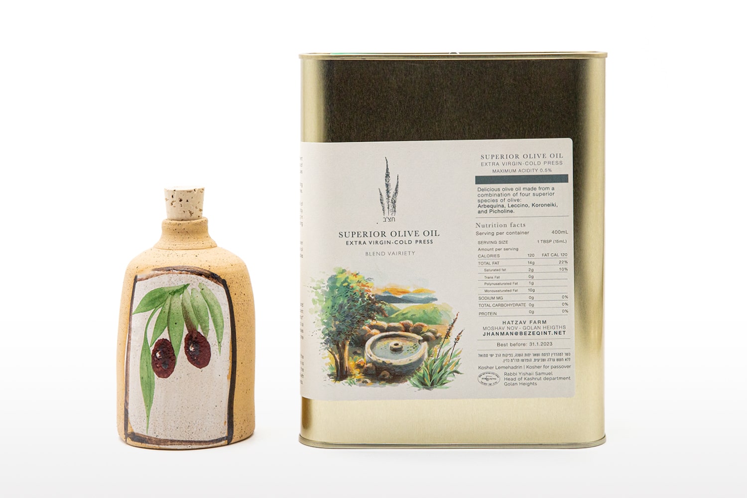 HaTzav Superior Olive Oil is an extra virgin cold-pressed olive oil that is made much in the same way that olive oil has been made in Israel for centuries with one small difference. Ya’akov Haneman approaches olive oil the same way that he approaches wine. He believes in the power of blending various oils to create a perfectly balanced symphony of flavor.