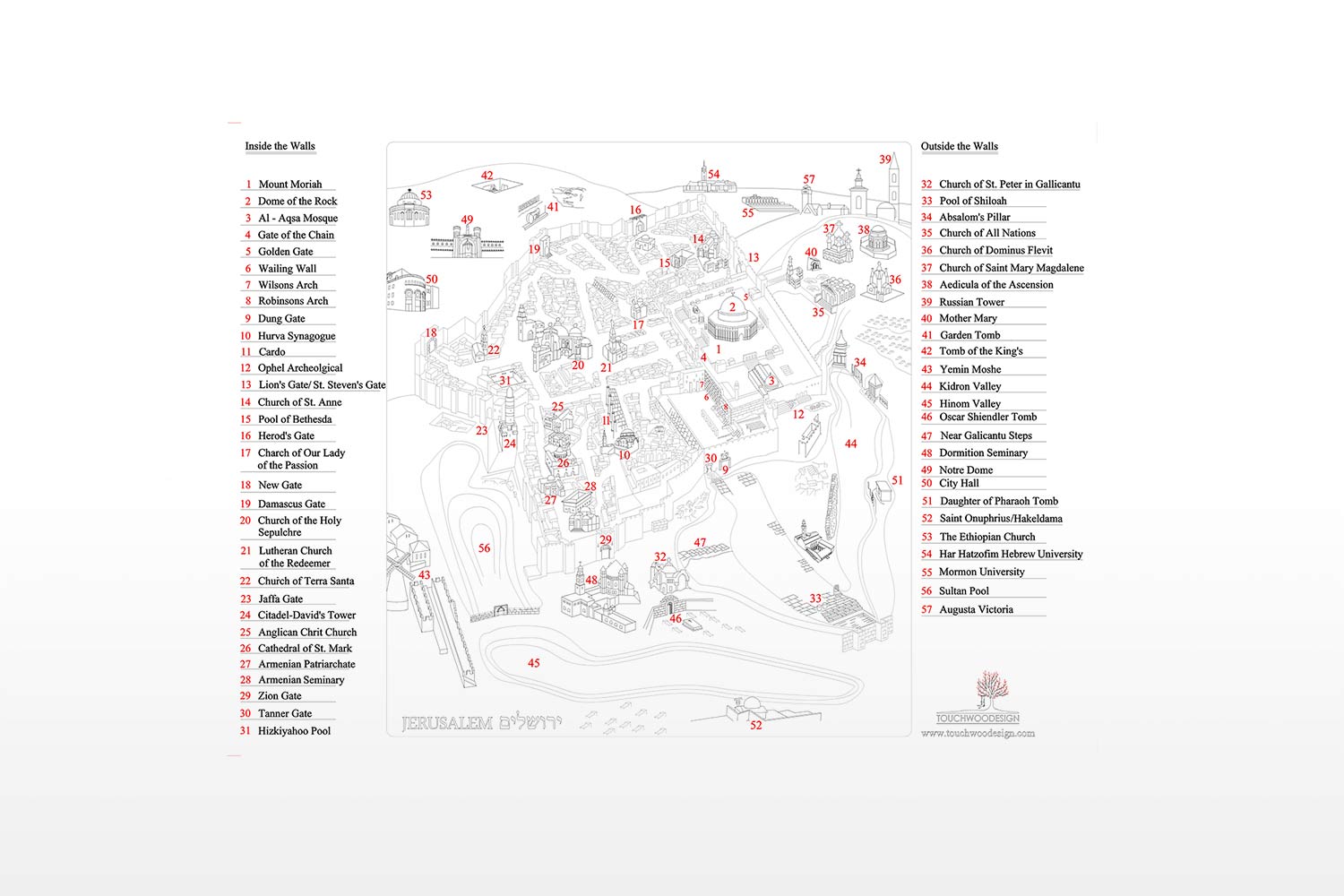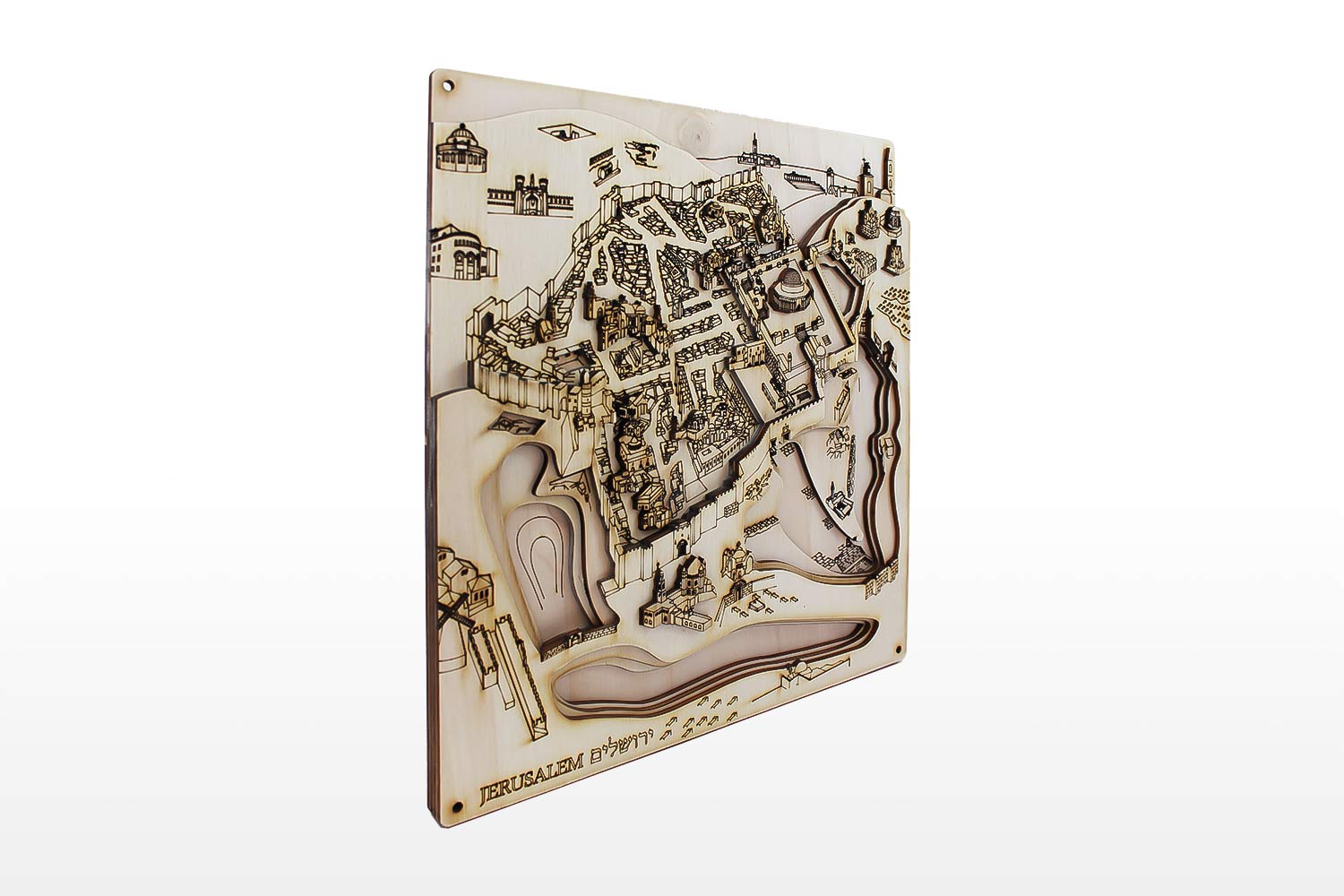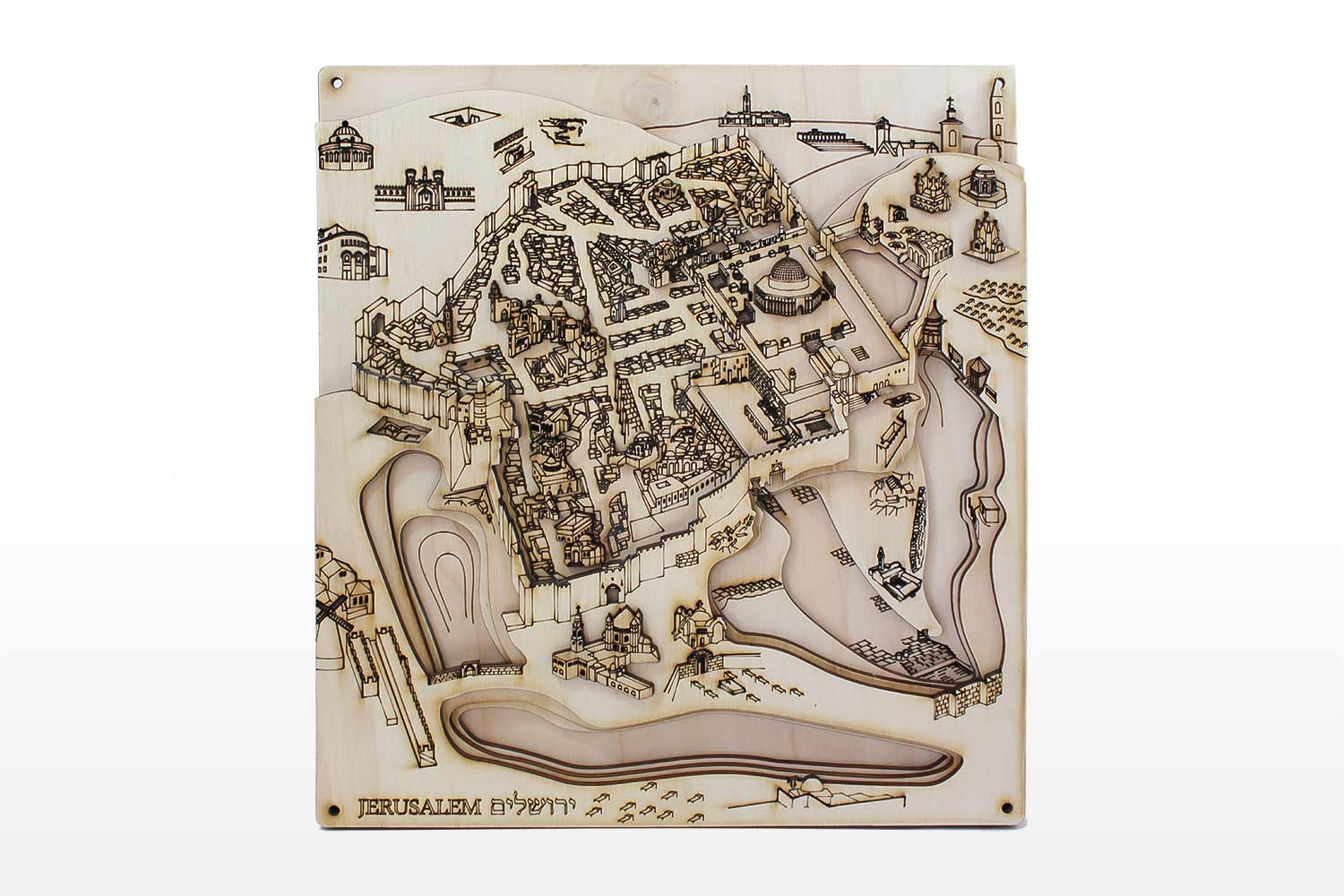 With this beautiful 3D Wooden Jerusalem map even if you can’t visit Jerusalem, you can explore the city in 3D with an accompanying, numbered illustration indicating all the points of interest, and historical and biblical significance.