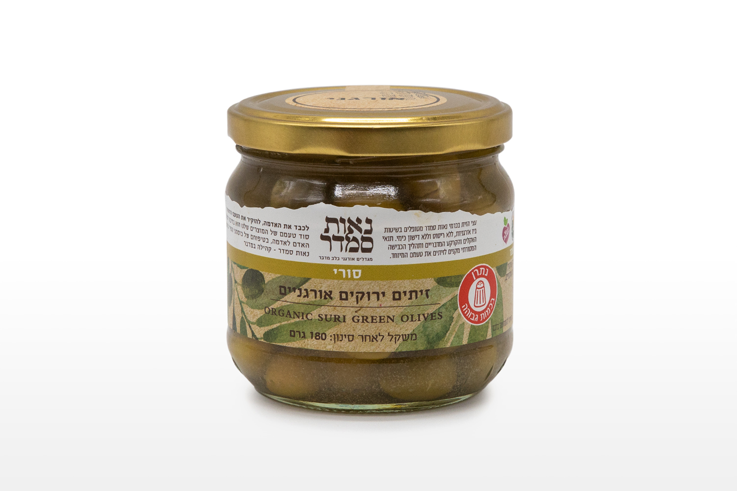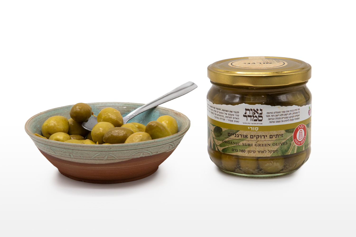 The Syrian olive is a small, juicy, green olive that has been grown in the land of Israel for thousands of years. The olives are cracked and have a slightly bitter taste making them a perfect compliment for savory dishes, and martinis.
